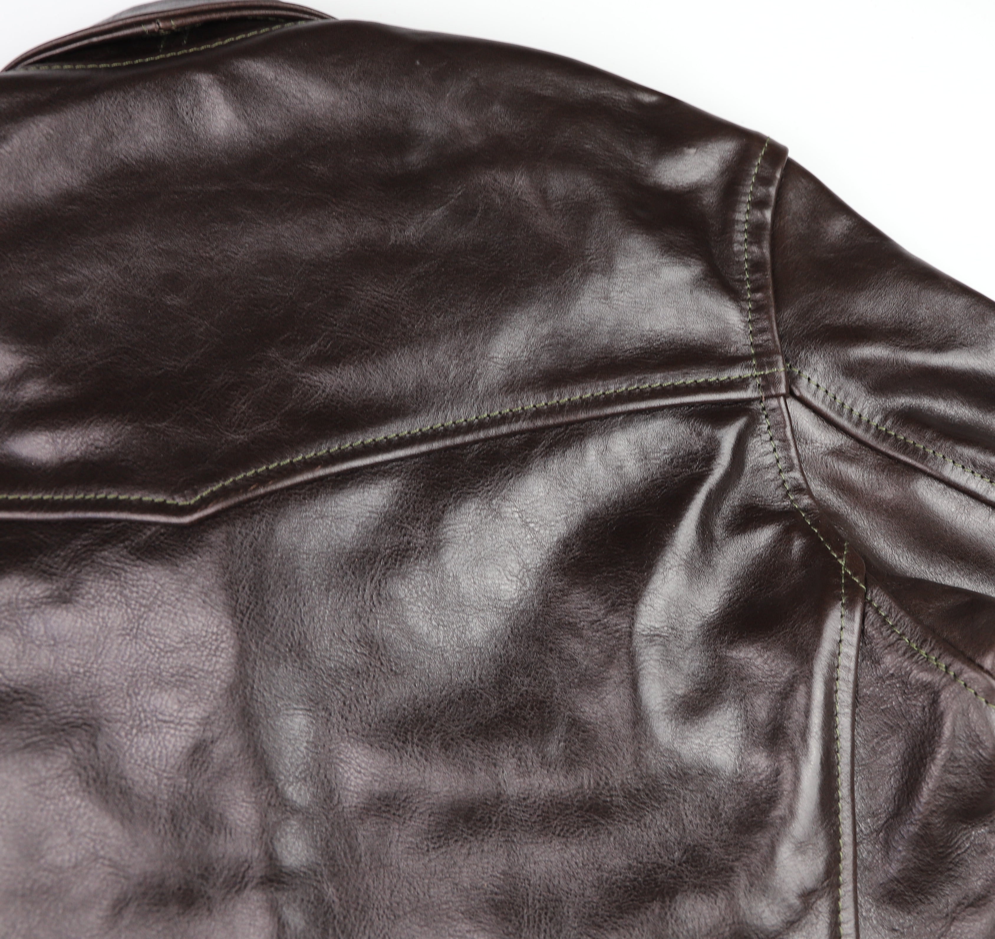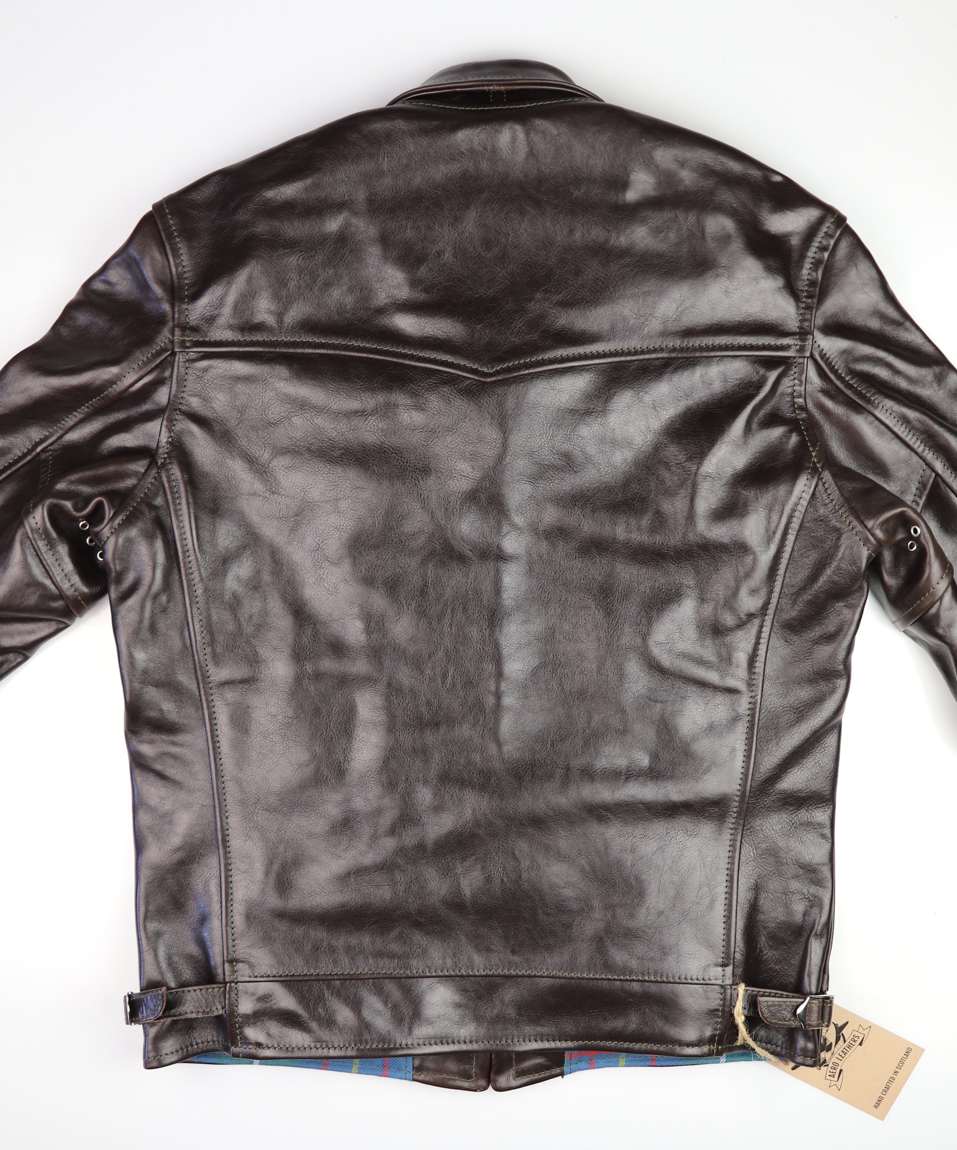 This jacket is brand new with tags. This leather is medium weight, so it doesn't have much of a physical break in (compared to Chromexcel FQHH). It has a nice grainy texture and plenty of body!