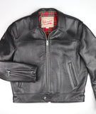 Gently worn Aero Highwayman in Black Chromexcel horsehide, size 42. This jacket features a brass front zipper, brass ball and chain pull on chest pocket, straight cuffs (no internal knit cuffs), black cotton drill lining and left side interior pocket with snap closure.